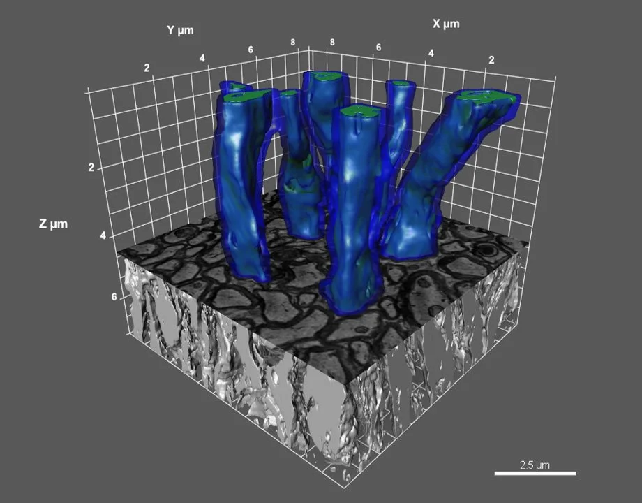 Analyses 3D objects using histogram-based segmentation methods to easily calculate region dimensions, morphology, object count, intensity measurements, and more.