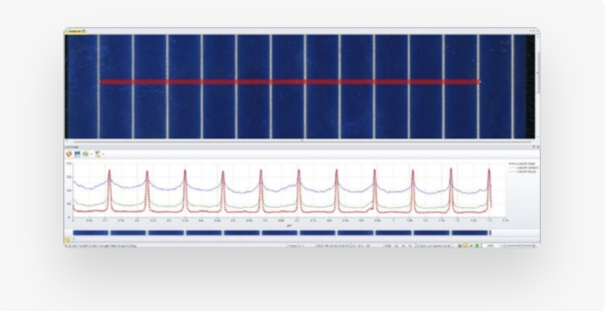 Draw a variety of lines and shapes for displaying the intensity under the lines as Line Profiles. Manually or automatically find peaks and valleys of intensity along the line for easy ring or edge detection.